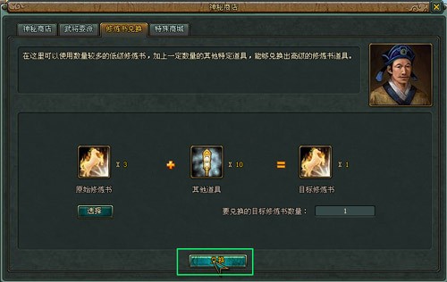 通过城市界面的“神秘商店” 进入到修炼书兑换界面,