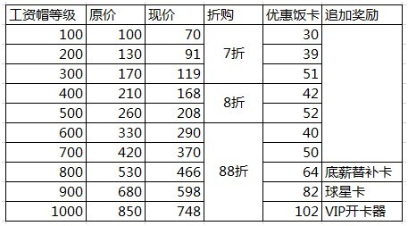 注:工资帽等级开通至800-1000将额外获得以上追加道具奖励,奖励将在活动结束后3-7个工作日发放。