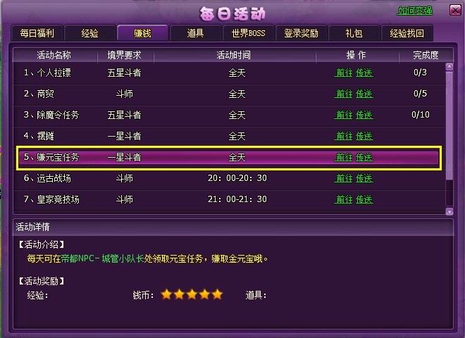 6. 活动—经验界面,增加【赚元宝任务】的介绍;