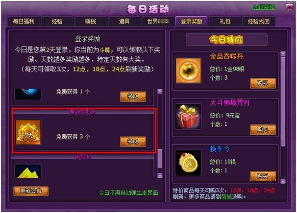 3、 新增了每日充值奖励,每天充值奖励不同,达到条件可免费领取。