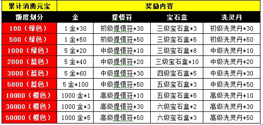 注:交易、市场、摆摊、百强争霸赛元宝流通,不计入本次累计消费元宝活动;