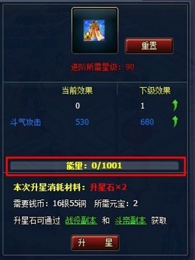 4) 每次升星操作都会增加一定数额的能量,当能量值满时则时装会升级。每次升星操作都有几率获得1-5倍的暴击,获得1-5倍能量值。