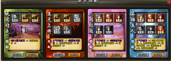 特殊说明:使用神秘锦囊或者缤纷锦囊,分别可以获得“神秘卡片”和“缤纷卡片”。使用神秘卡片后可随机获得一张“桃园结义”、“五虎上将”组合中的三国名将卡。