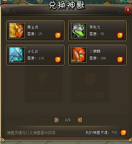 1.          玩家点击活动入口,可选择购买神兽匣或兑换神兽。