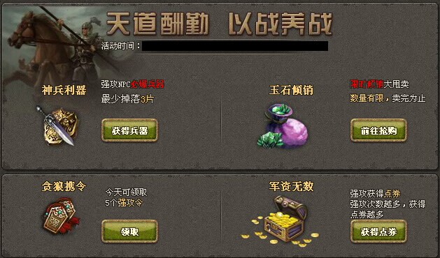 a) 活动期间,强攻NPC必掉兵器碎片(仅限有几率掉落兵器的NPC)。