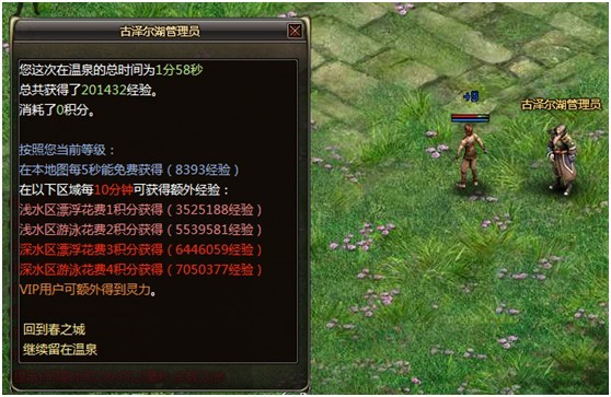 进入即可开始泡温泉得到经验。