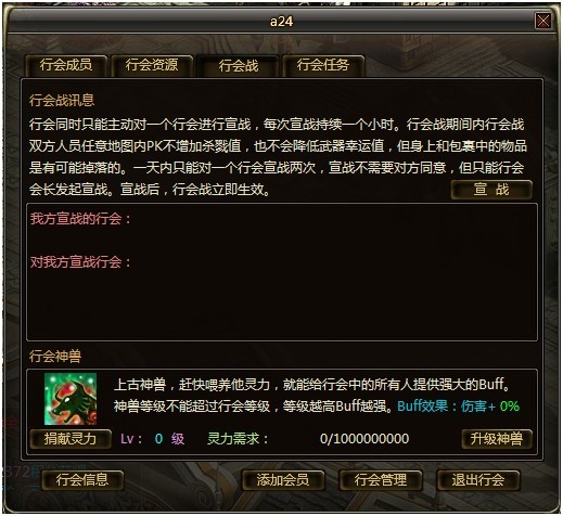 行会神兽乃上古神兽,以其强大的灵力护佑着行会,可以为所有行会成员增加永久伤害BUFF(退会自动消失),大幅提升伤害。