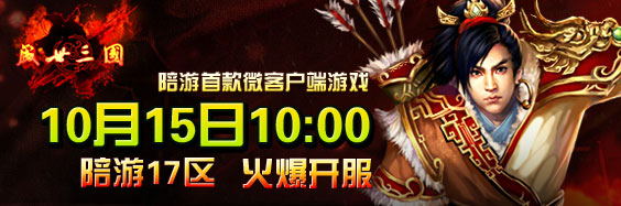 陪游《盛世三国》17区将于10月15日上午10:00震撼开启,与此同时,我们还为各位玩家准备了丰富的活动和好礼,助英雄们驰骋沙场!