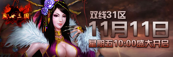 陪游《盛世三国》31区将于11月11日上午10:00震撼开启,与此同时,我们还为各位玩家准备了丰富的活动和好礼,助英雄们驰骋沙场!