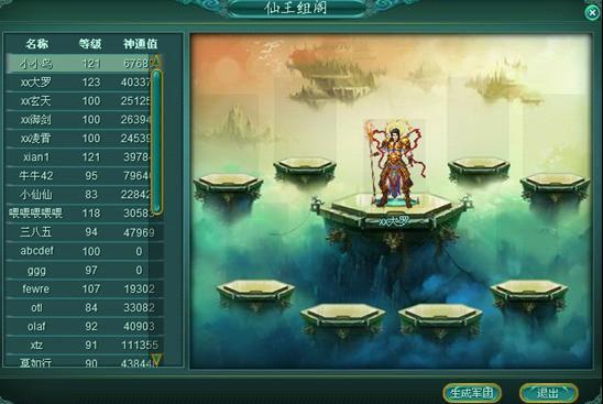 5、仙王组阁(选取金将,生成军团)