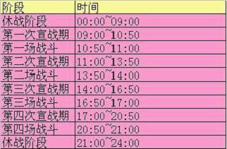 战斗日具体场次安排:
