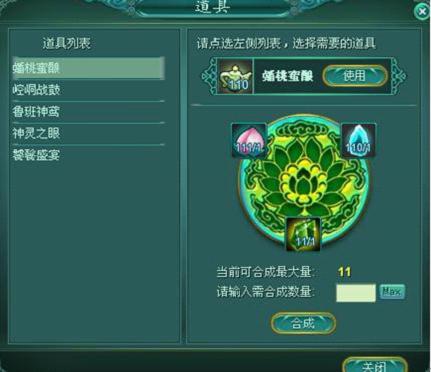 金将可以使用道具按钮,合成以及使用道具。
