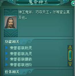 在试炼之门处添加了一个Npc“鬼斧神工”玩家在此对荣誉套装进行各种操作。