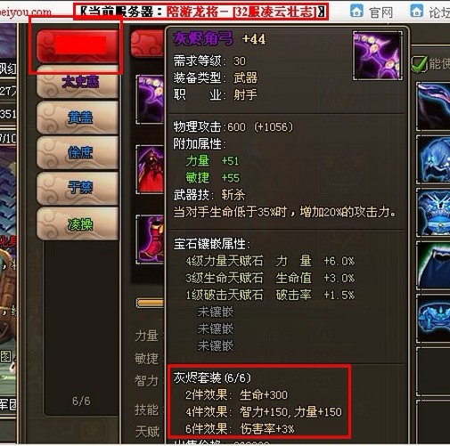 截图(包含主将名,套装属性,当前服务器截图)