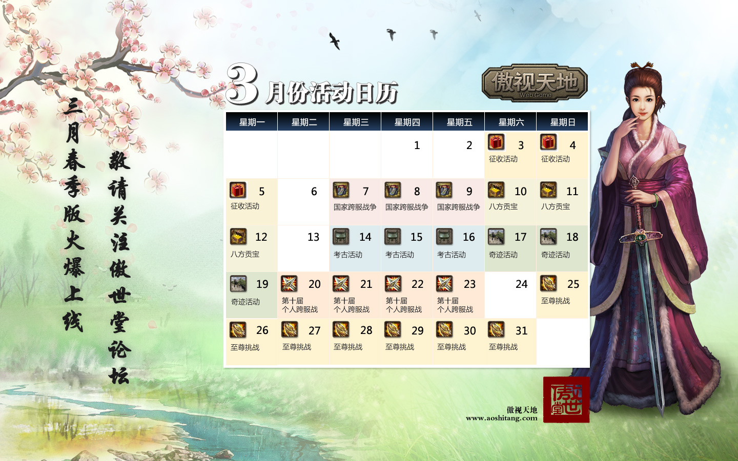 《傲视天地》3月份活动日历